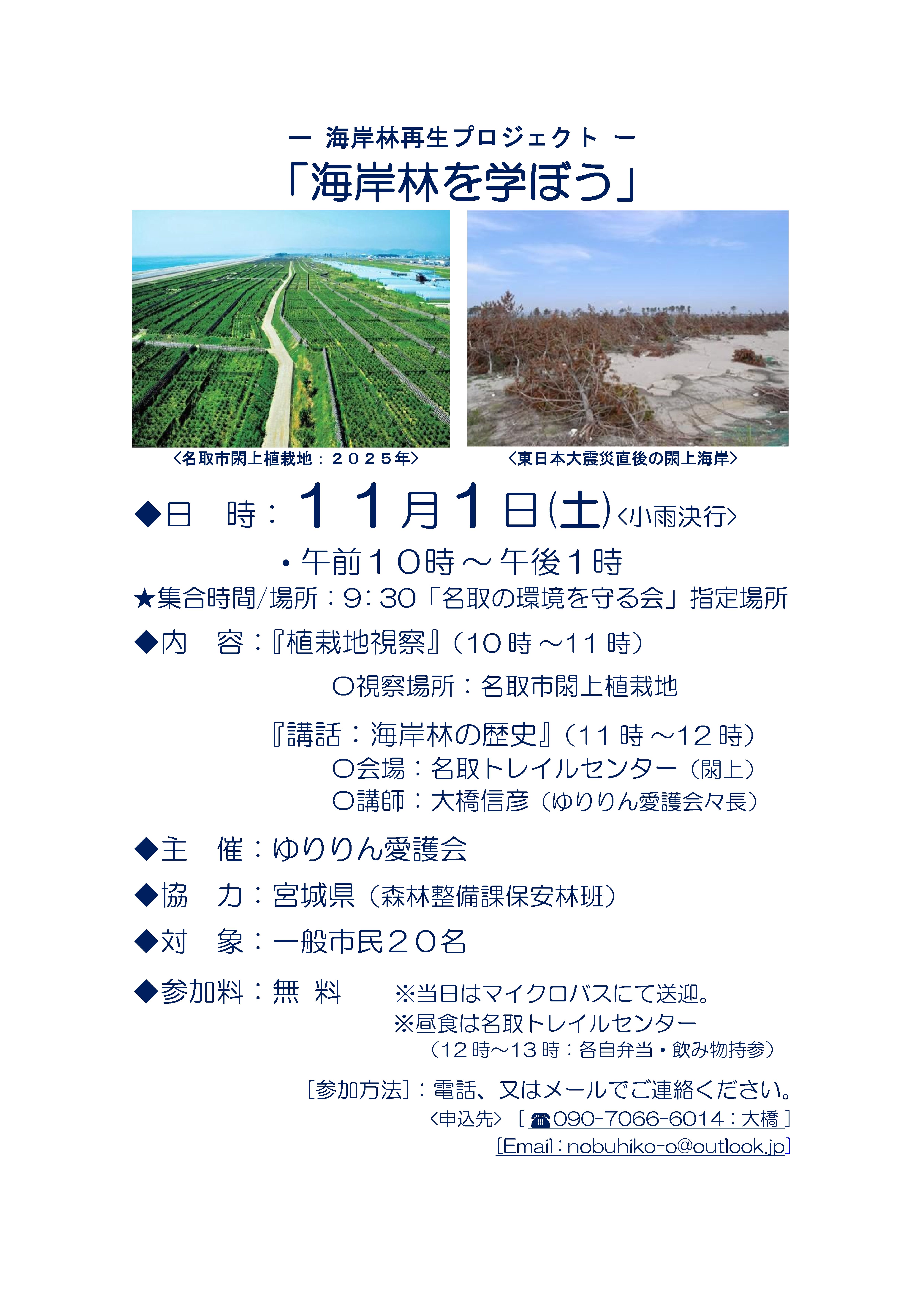 「海岸林を学ぼう」 2025年11月1日(土)開催!
