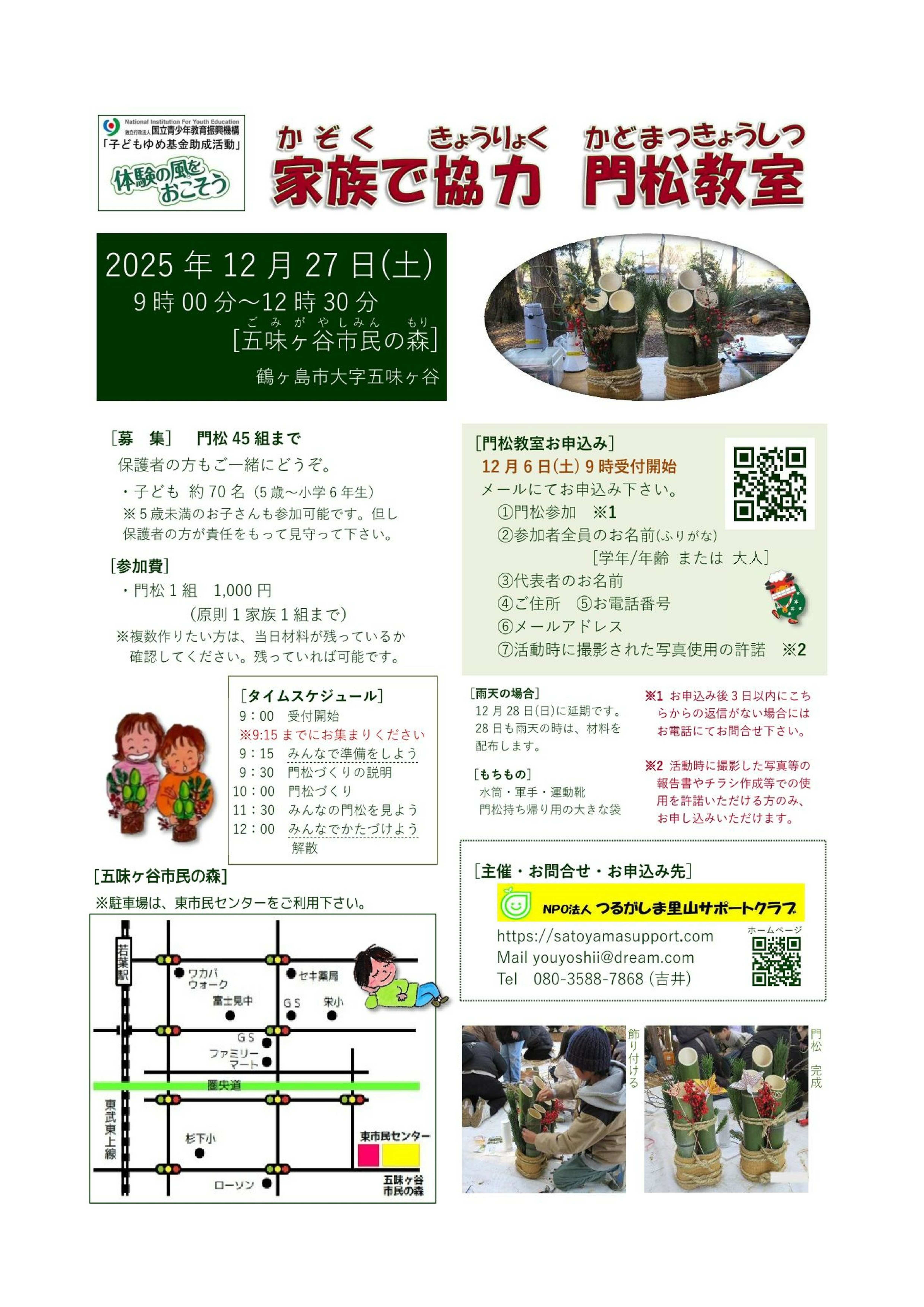 【イベントお知らせ】家族で協力!! 門松教室参加者募集