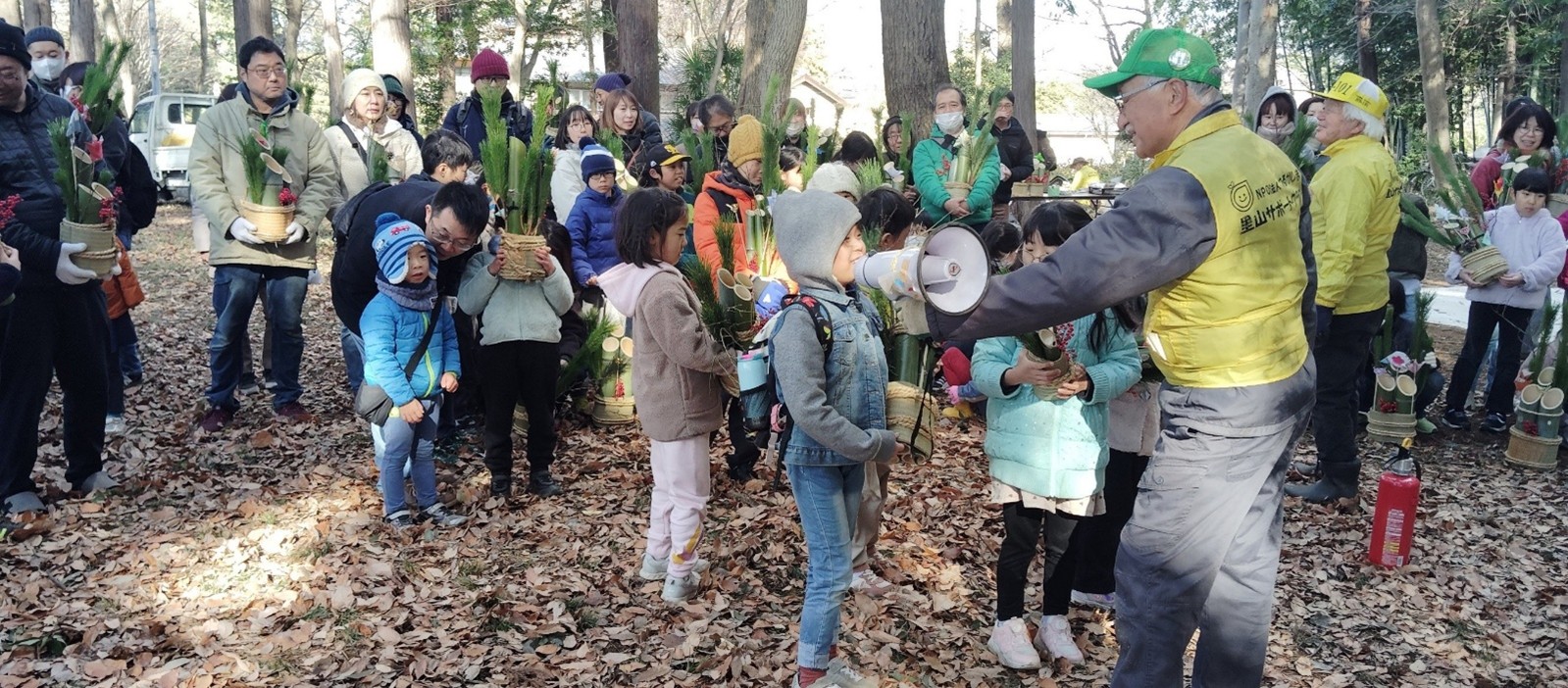 毎年恒例となっている年末の「門松づくり」を開催しました。当日は43家族135名、スタッフ20名(里山15名、親子劇場2名、支え合い協議会3名)の計155名が参加しました。