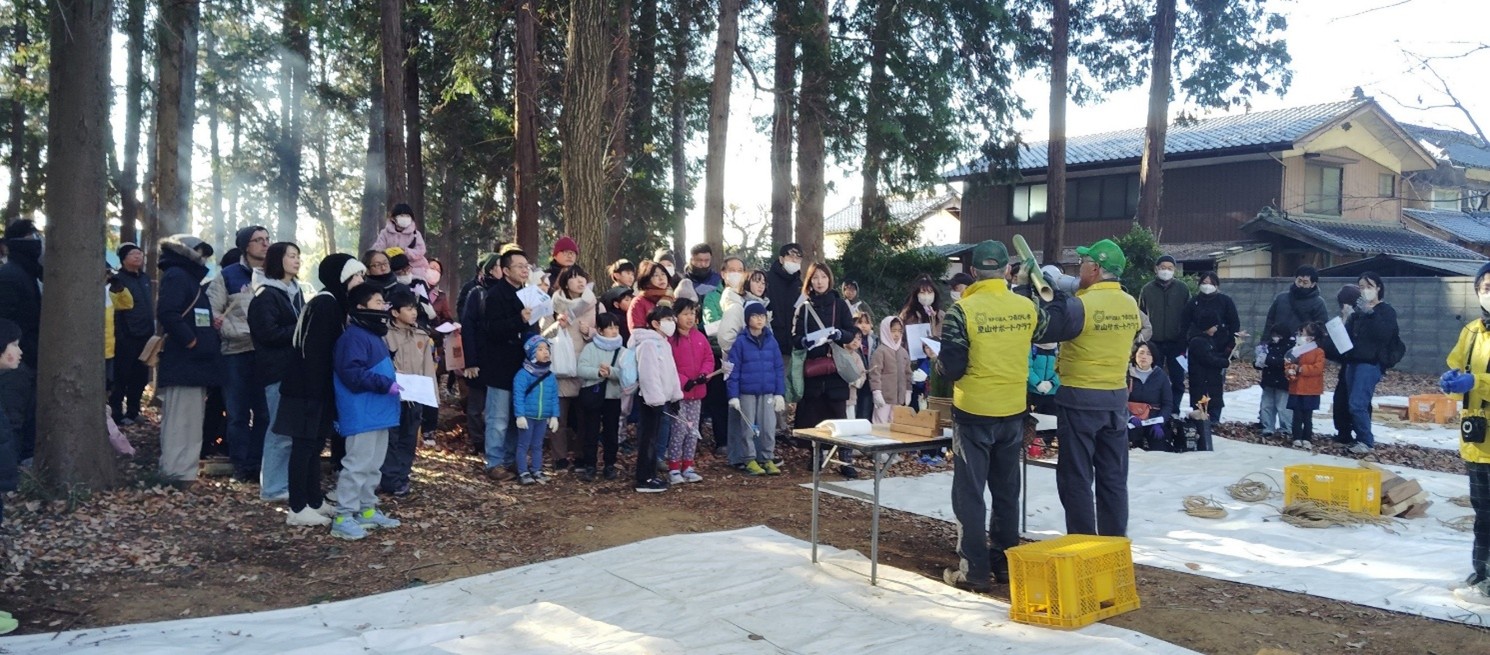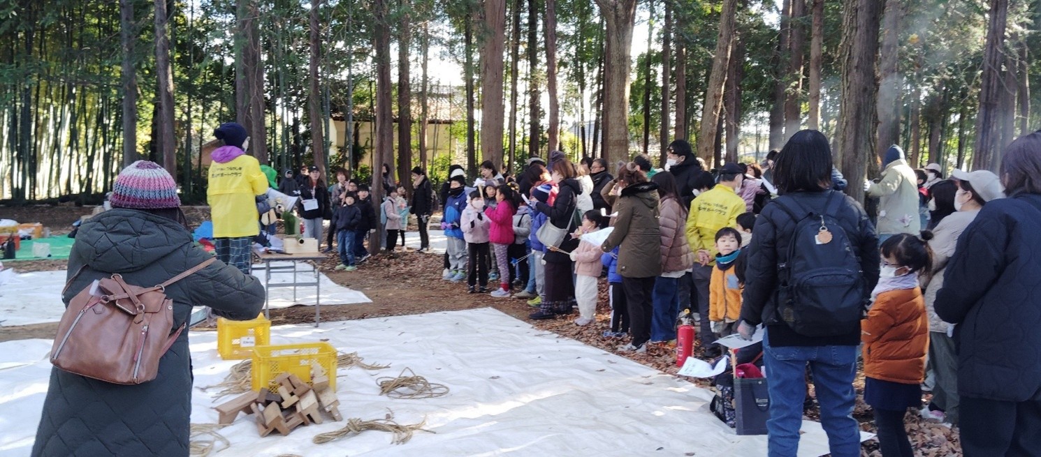 当日は厳しい寒さとなりましたが、焚き火で暖を取りながら、和気あいあいと作業を進めました。完成後は、出来上がった門松と一緒に記念撮影を行い、参加者からは「家族で協力して作ることができ、良い思い出になった」「初めてだったが、うまくできて良かった」といった喜びの声が多く寄せられました。最後は全員で協力して片付けを行い、無事にイベントを終了しました。