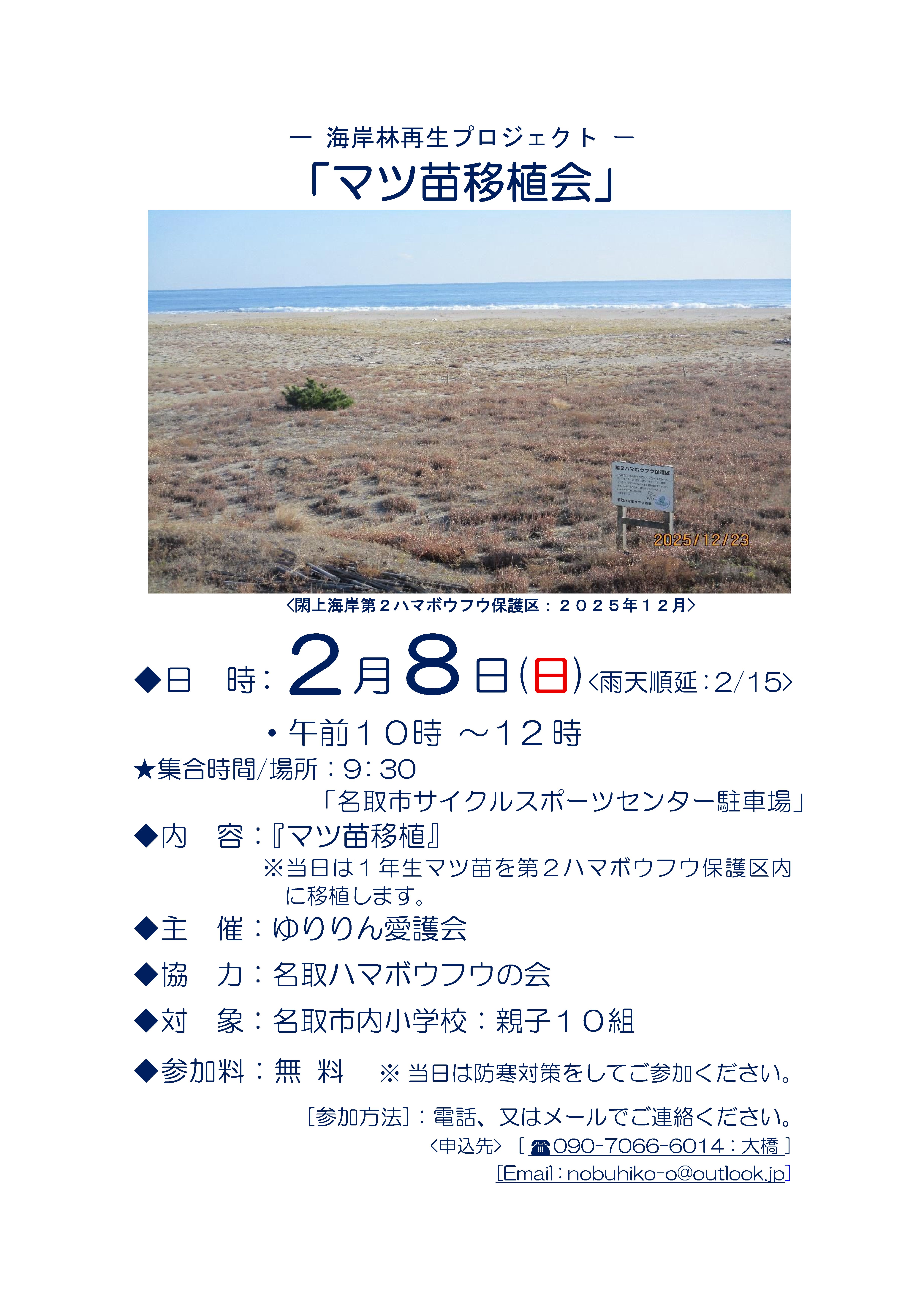 「マツ苗移植会」 2026年2月8日(日)開催します!