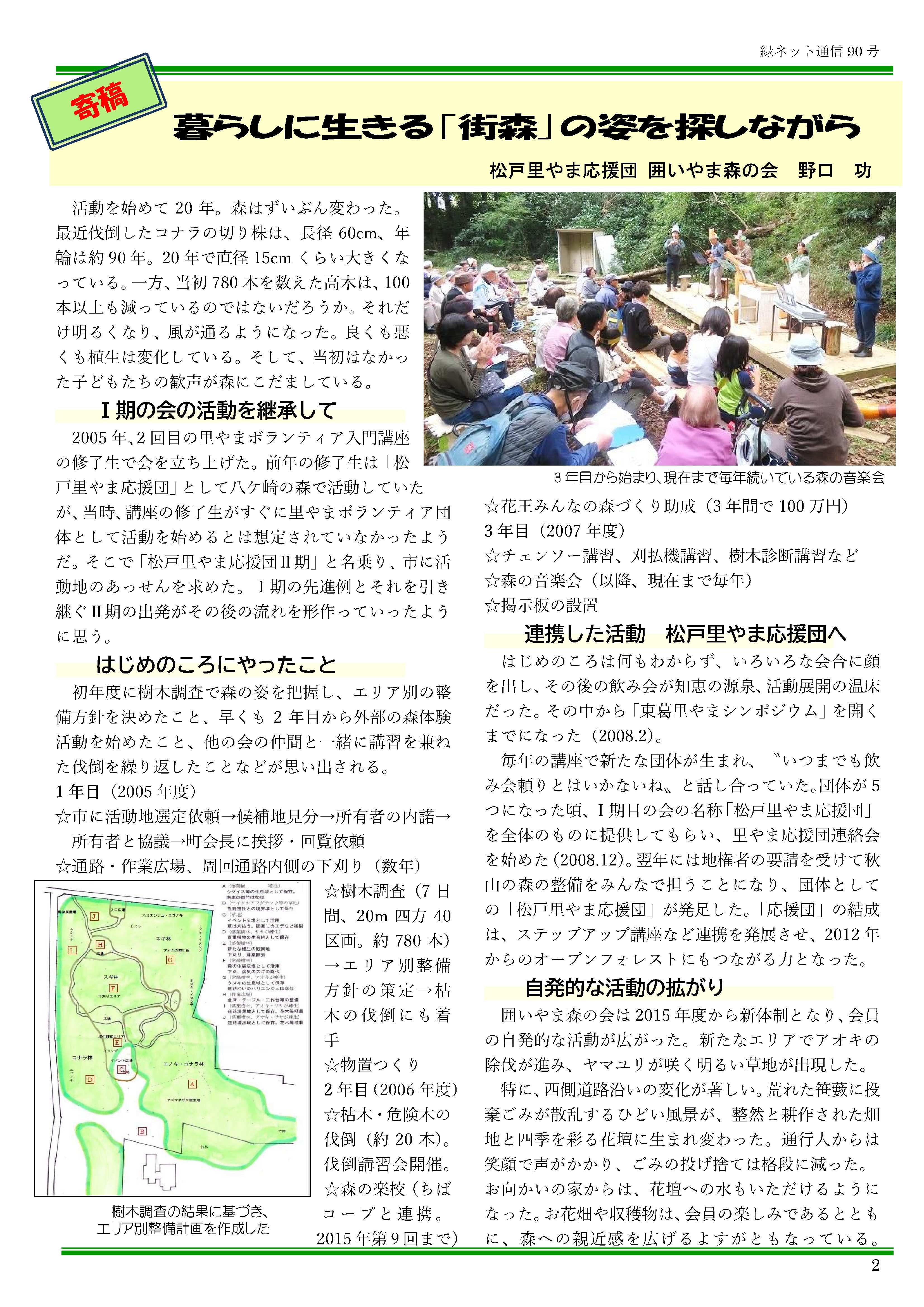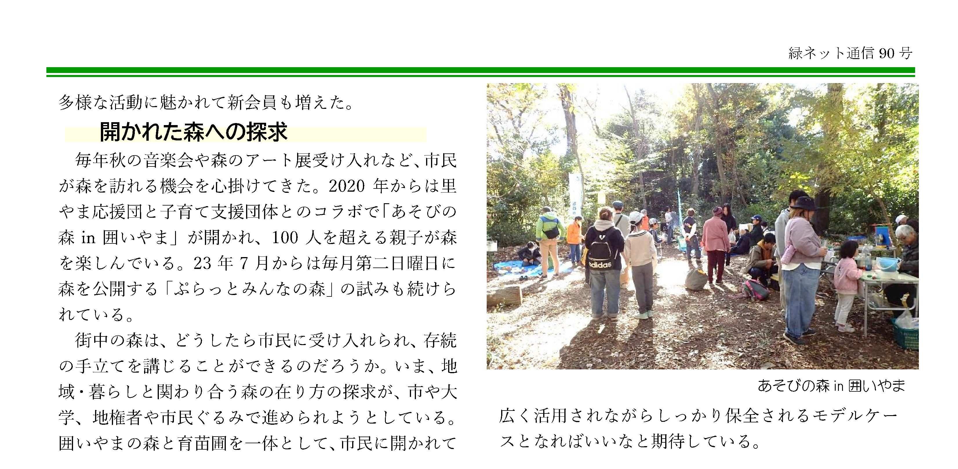 緑ネット通信№90で「囲いやまの森:暮らしに生きる「街森」の姿を探しながら」
