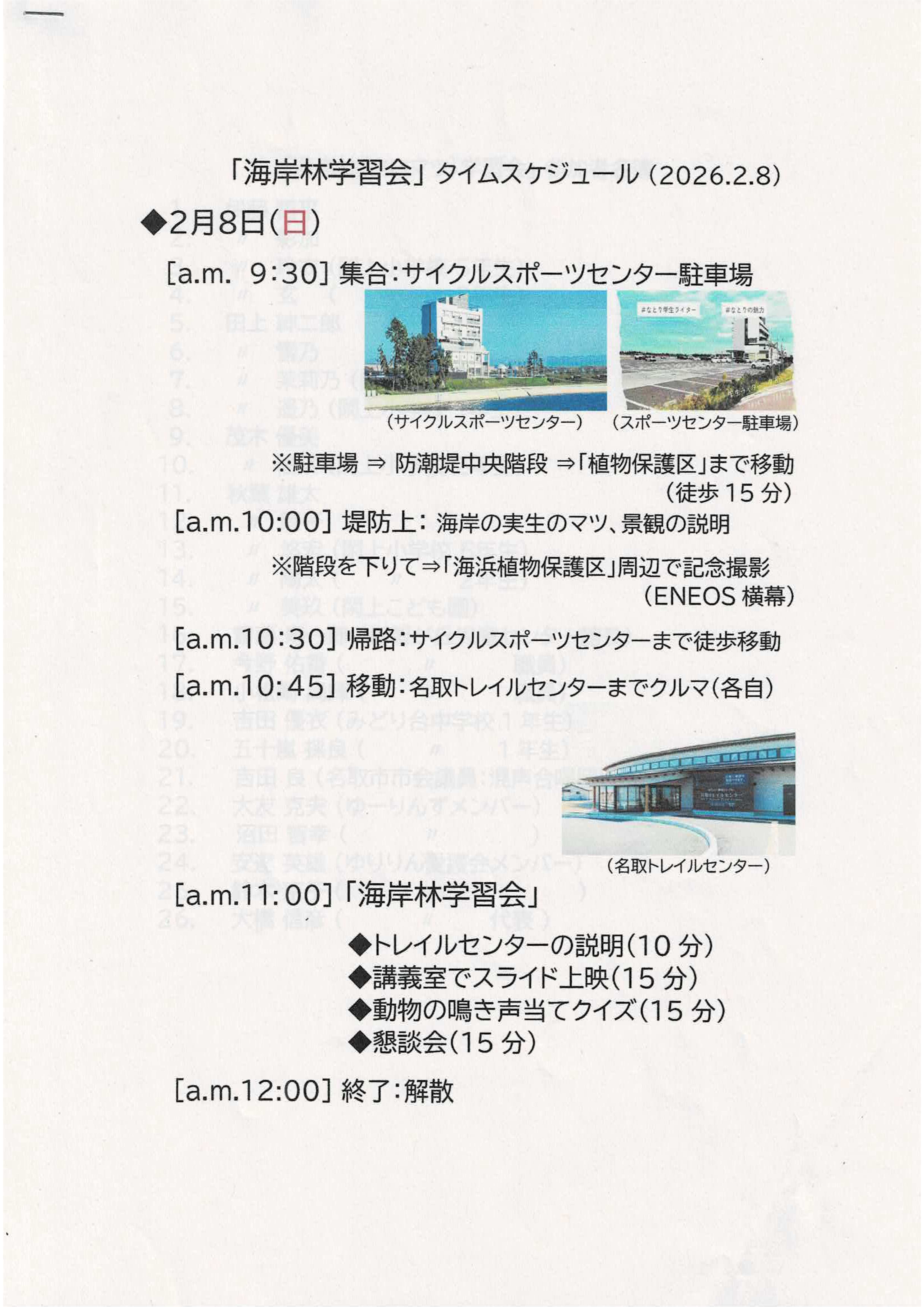 イベントは植樹から「海岸林勉強会」と名を変えて開催いたしましたことをご報告いたします。