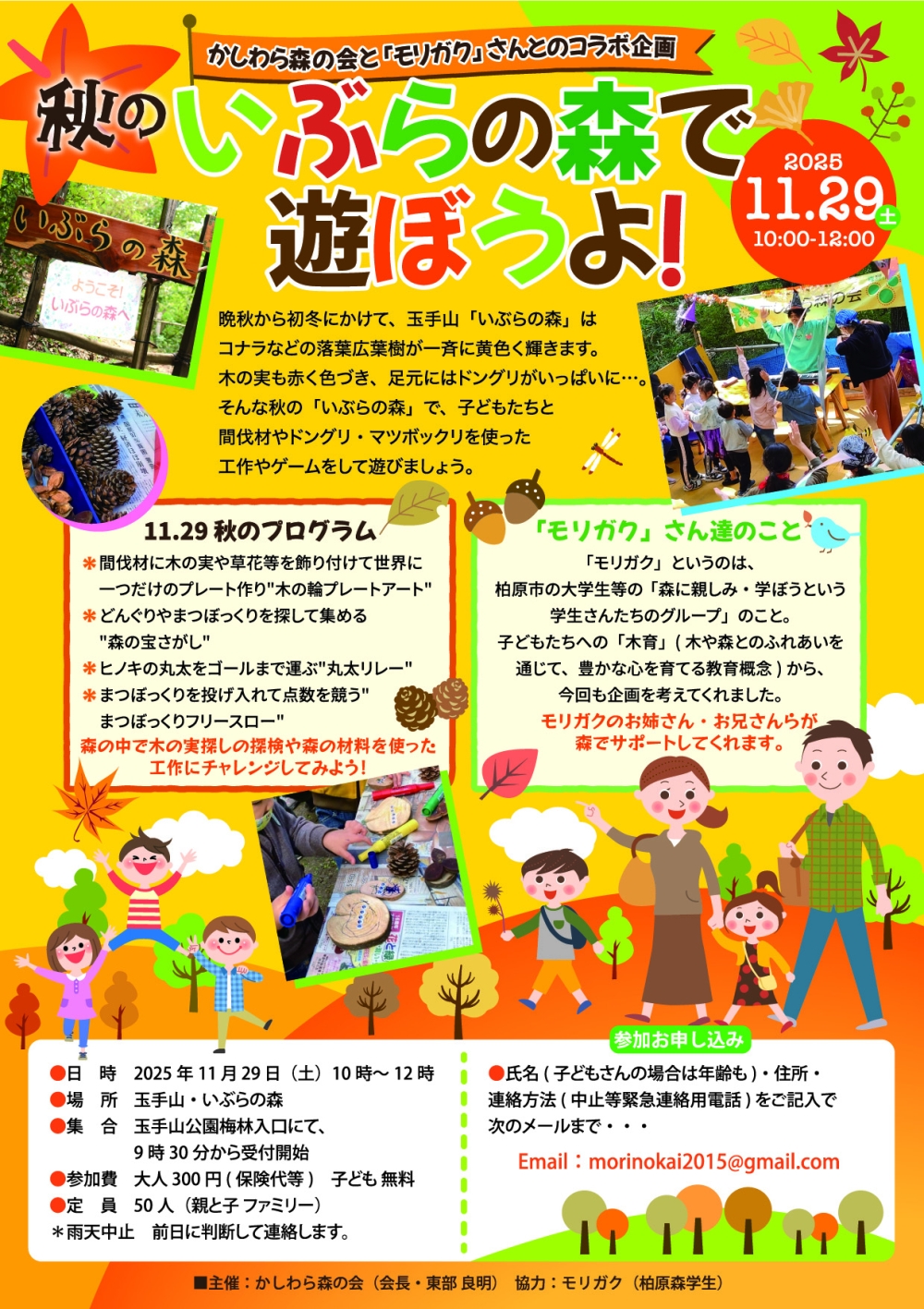 開催日: 2025年11月3日(月)9:00-11:00開催地: こんぶくろ池自然博物公園主催:NPO法人こんぶくろ池自然の森ワー…