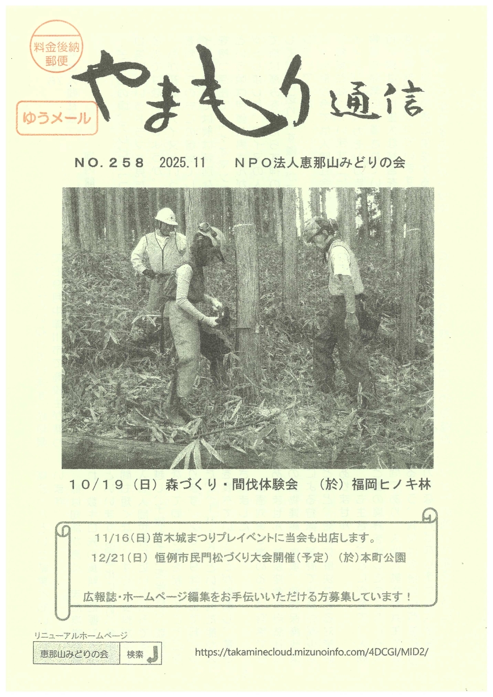 やまもり通信発行しました。表紙は間伐体験会の様子です