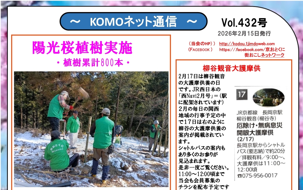 431号では、向日が丘支援学校中学校生徒とのアジサイ植樹の様子などが掲載されています。KOMOネット通信431号はこちらからご覧ください。432…
