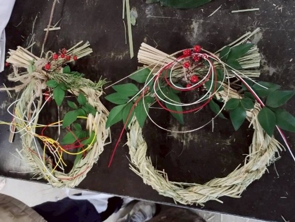 お正月飾りは縄をなうのが難しいのですが、子どもたちは一生懸命にチャレンジします。写真2は山季の会ではなく、市内で協力して活動している「ゆうゆう里山四季の会」のイベントに参加してくれた子どもたちが作ったものです。初めてにしてはとっても上出来でしょう♪